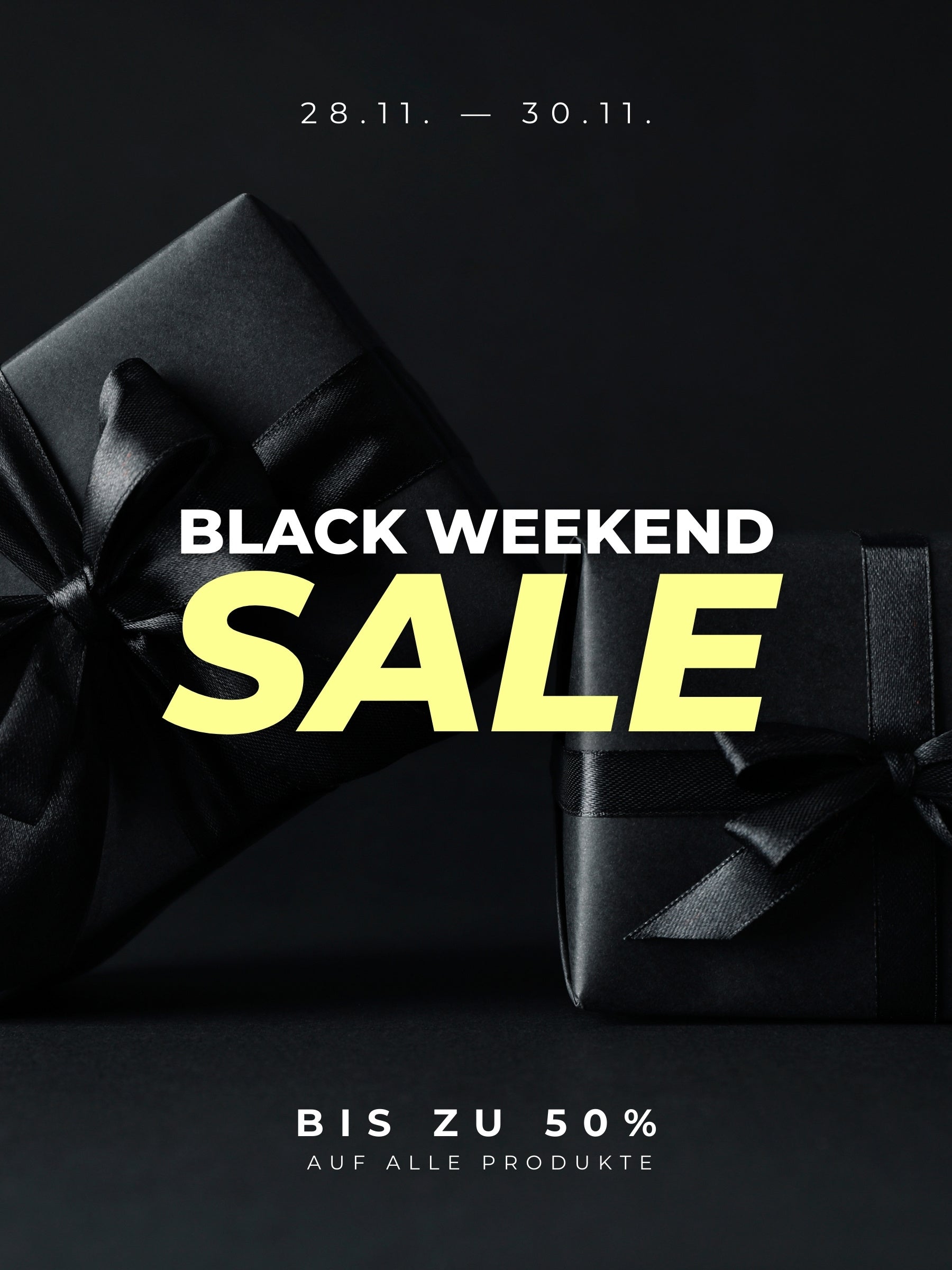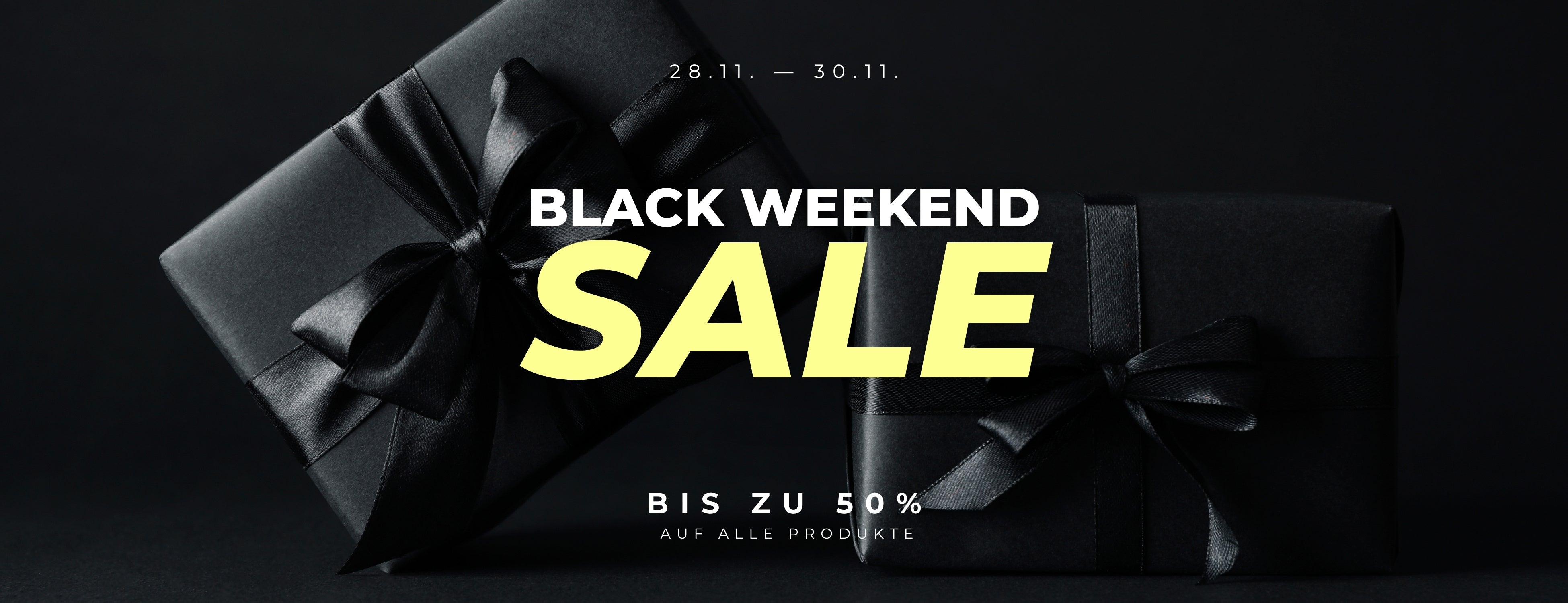 Der BLACK WEEKEND SALE gilt für unser ganzes Sortiment und wird automatisch an der Kasse abgezogen.