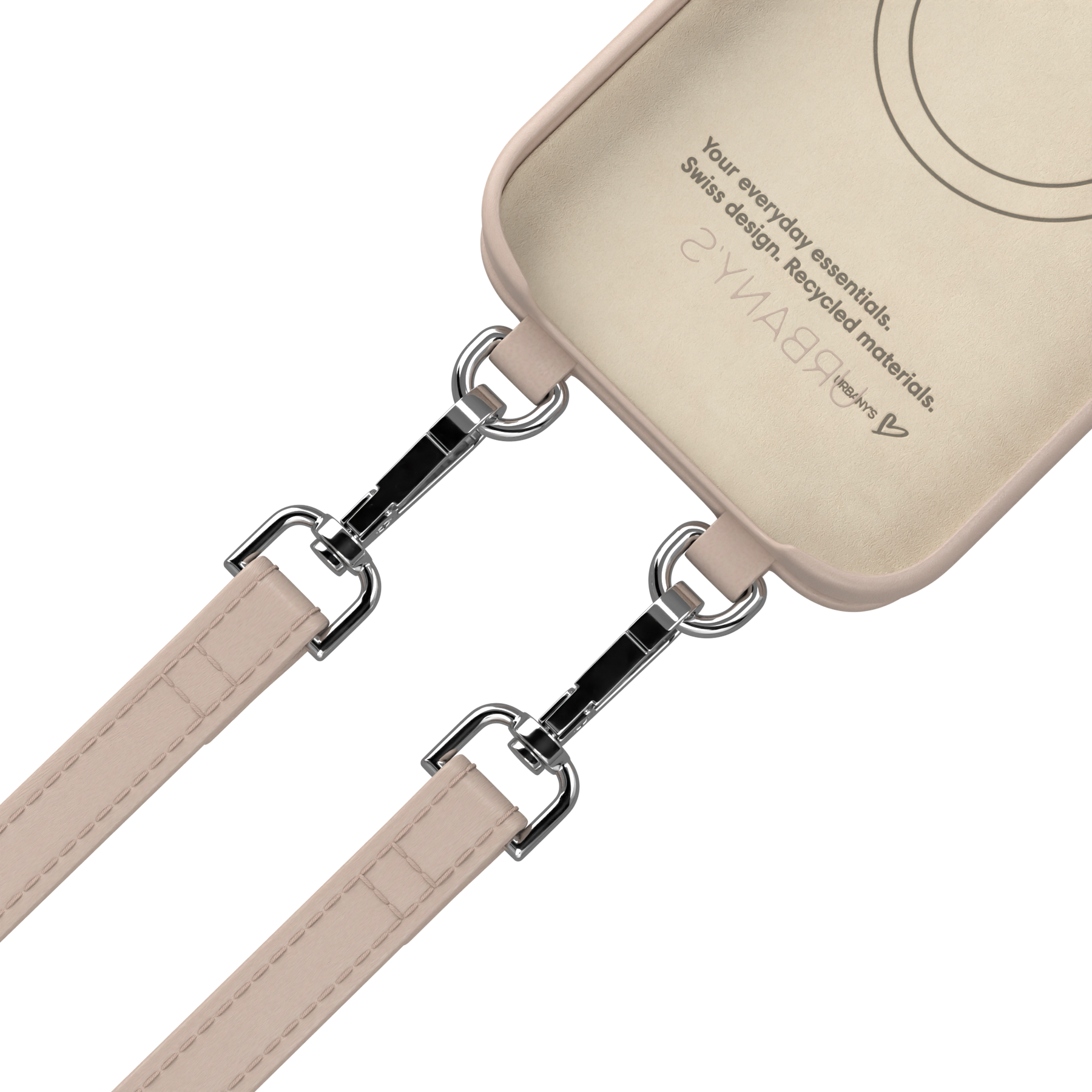 La chaîne de téléphone+ d'URBANY'S est fabriquée à partir de matériaux recyclés et répond aux normes de qualité les plus élevées.
