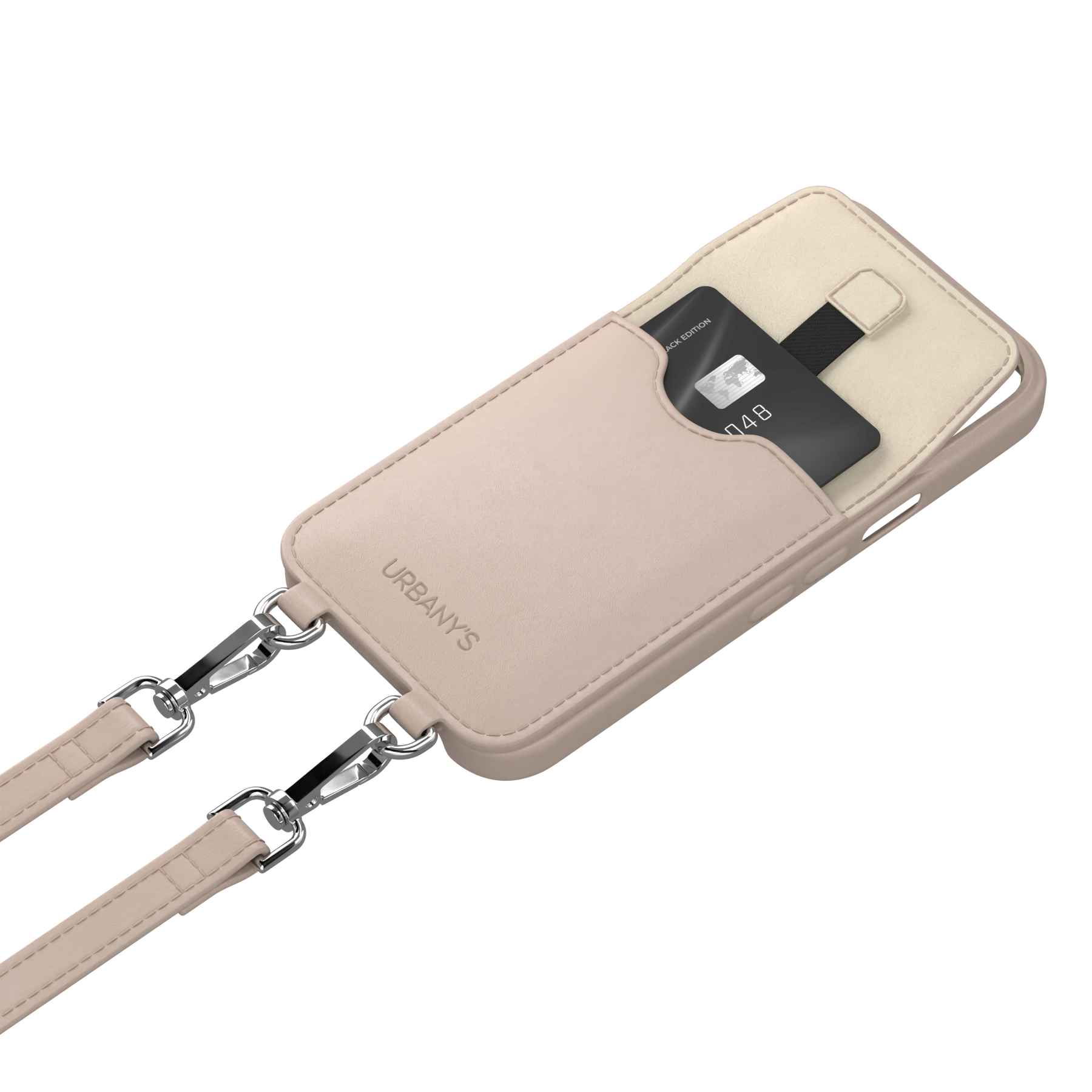 Fais une déclaration avec l'élégante chaîne de téléphone+ d'URBANY'S en cuir végan recyclé. Dès maintenant, tu as les mains libres et ton smartphone toujours à portée de main. Tu n'as plus besoin de sac pour ranger ton téléphone. Grâce au compartiment intégré pour cartes, tu as toujours tes cartes essentielles avec toi.